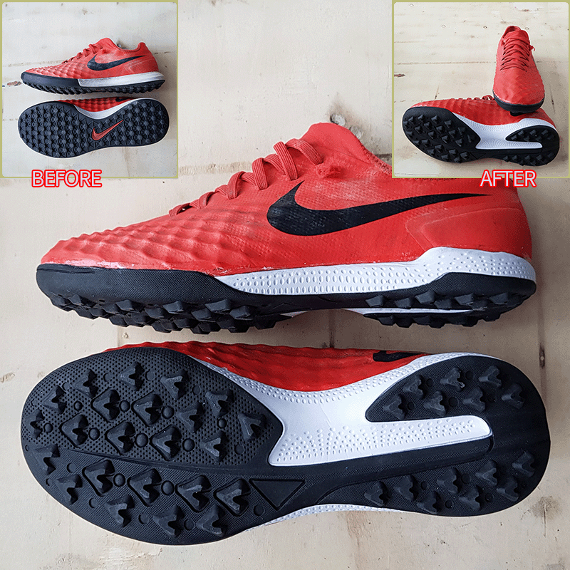 요청하신대로 기장 왼발 260mm, 오른발 255mm로 줄여서 창갈이를 해드렸으니 이젠 즐겁게 축구만 하시면 될것 같습니다^^