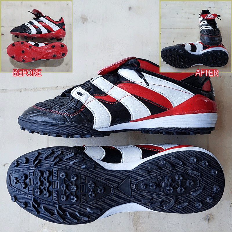 요청하신대로 텅 찍찍이로 수선하고, 기장 5mm, 볼 3mm 늘려서 창갈이를 해드렸으니 이젠 즐겁게 축구만 하시면 될것 같습니다^^