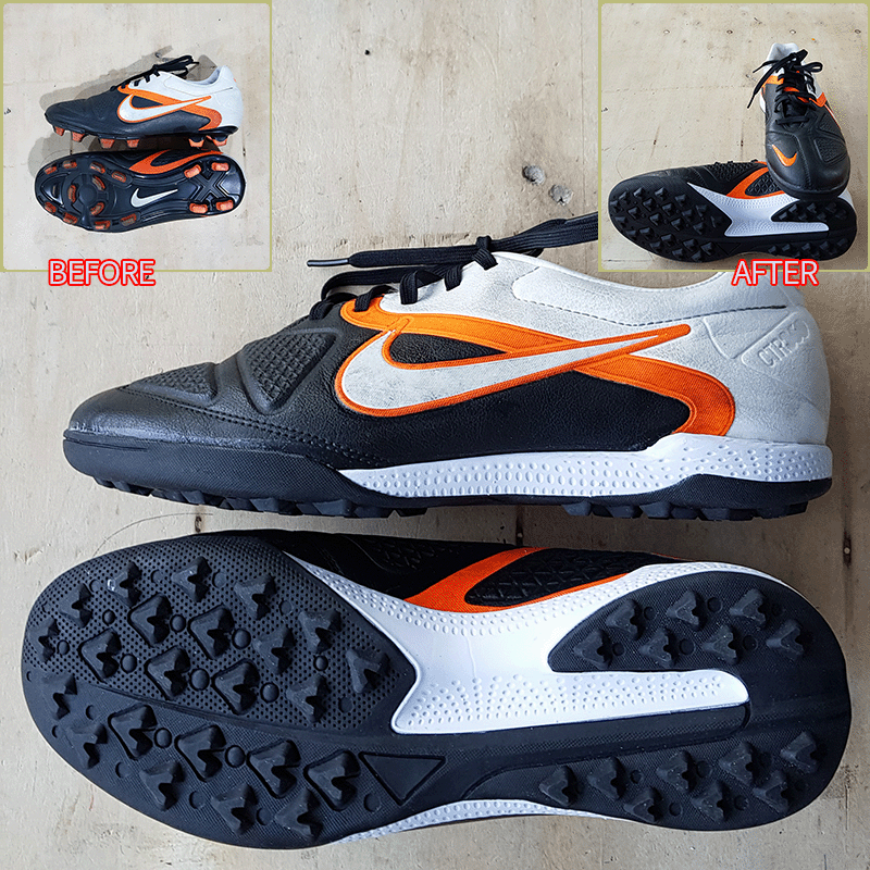 요청하신대로 기장 7mm, 볼 5mm 늘려서 창갈이를 해드렸으니 이젠 즐겁게 축구만 하시면 될것 같습니다^^