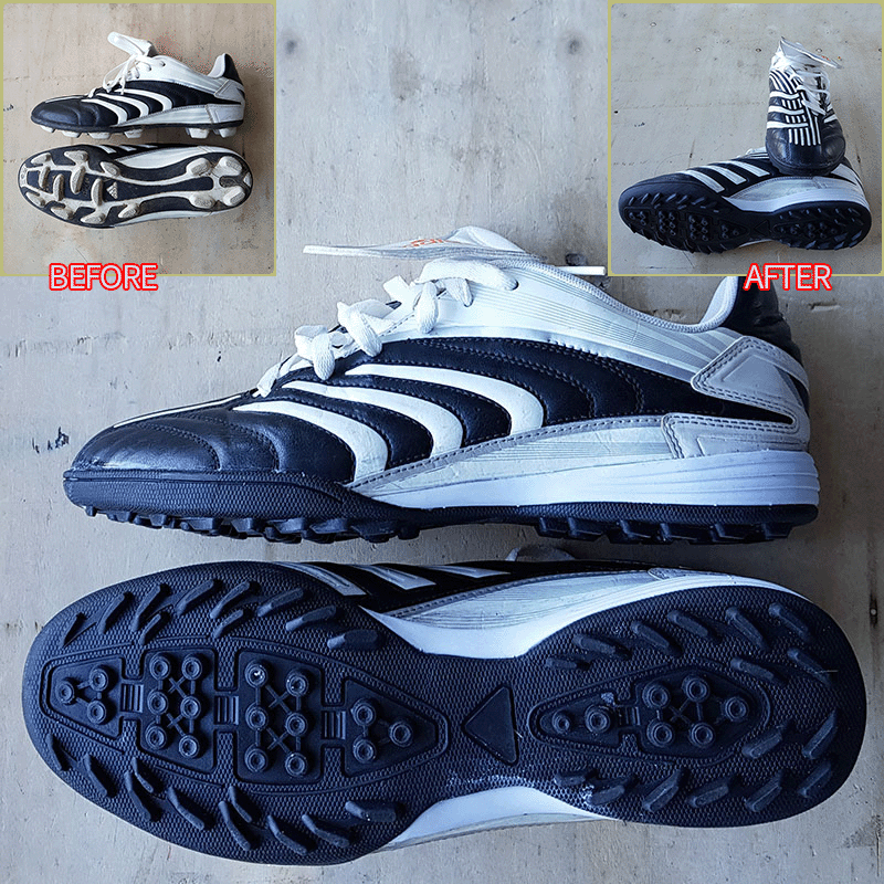 요청하신대로 빨간색 축구화는 기장만 5mm 줄이고, 검정색 축구화는 현재사이즈 그대로 창갈이를 해드렸으니 이젠 즐겁게 축구만 하시면 될것 같습니다^^
