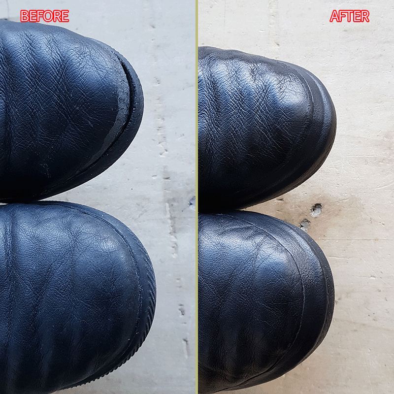 > 왼쪽 앞코 부분 벌어진 부분 수선 및 양쪽 앞코부분 덧댐 부탁드립니다