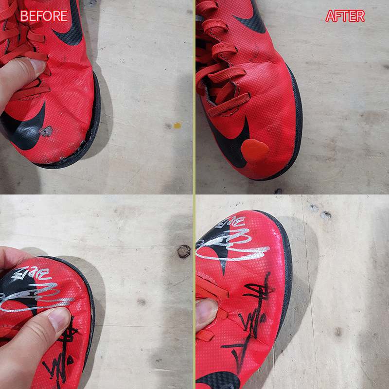 요청하신대로 밑창 떨어진 부분 수선해드렸으니 이젠 즐겁게 축구만 하시면 될것 같습니다^^