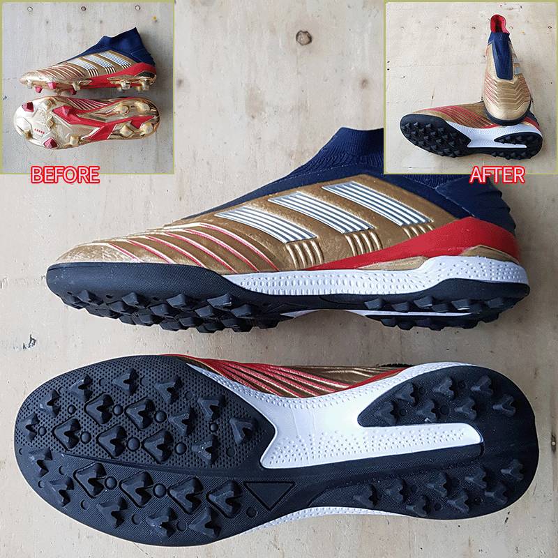 요청하신대로 오른발만 볼 2~3mm 늘려서 창갈이를 해드렸으니 이젠 즐겁게 축구만 하시면 될것 같습니다^^