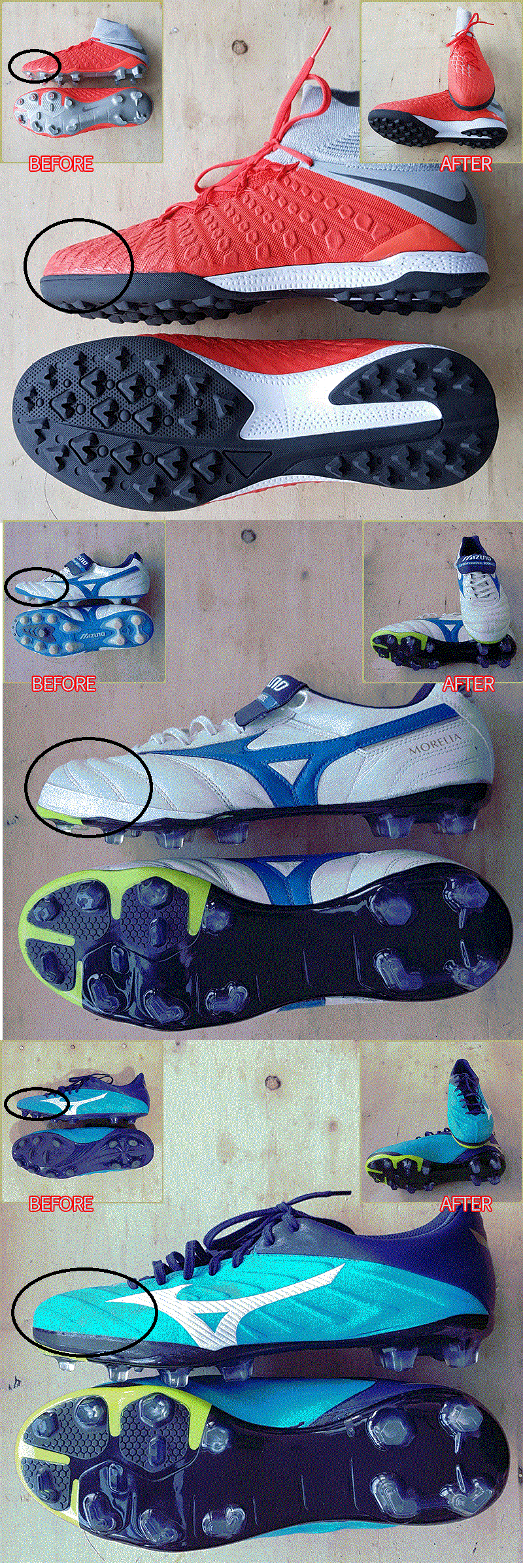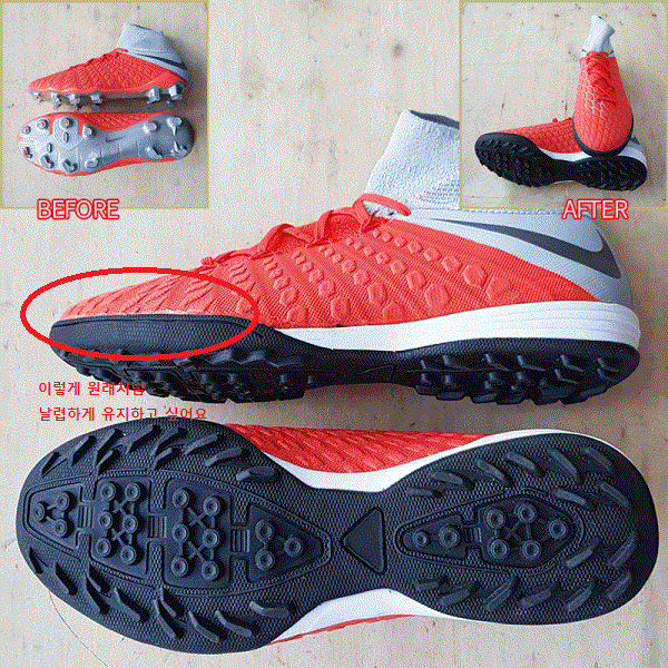 (위에서 첫번째 사진이 수선하고 받은 제 축구화구요,