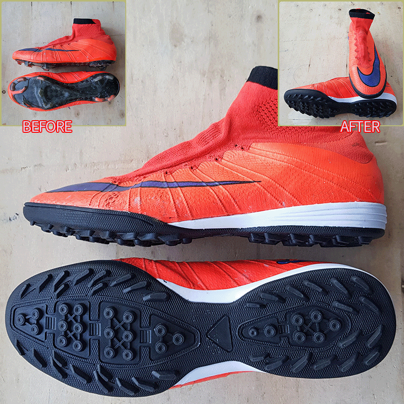 > 안녕하세요 축구화 창갈이 및 덧뎀 부탁드립니다.