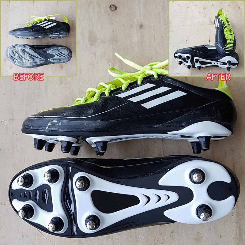 요청하신대로 엄지발가락 쪽 기장 2~3mm 늘려서 창갈이를 해드렸으니 이젠 즐겁게 축구만 하시면 될것 같습니다^^