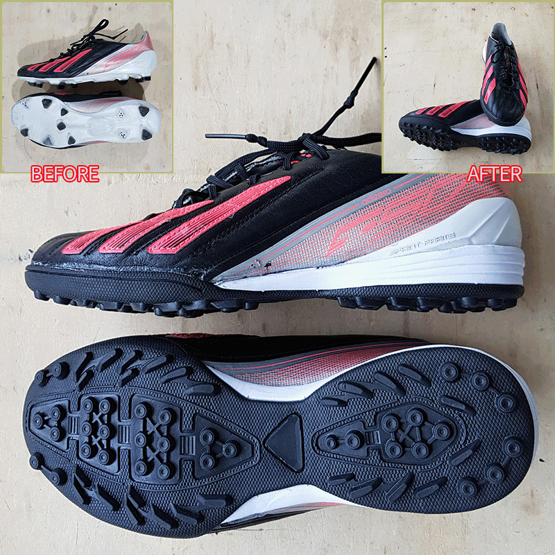 요청하신대로 발볼 10mm 늘리고 발등통증보완해서 창갈이를 해드렸으니 이젠 즐겁게 축구만 하시면 될것 같습니다^^