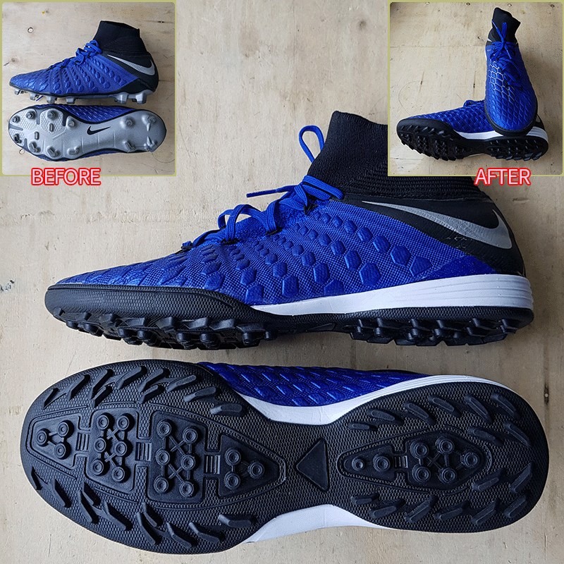 요청하신대로 오른쪽 엄지발가락 부분 기장만 3mm 늘려서 창갈이를 해드렸으니 이젠 즐겁게 축구만 하시면 될것 같습니다^^