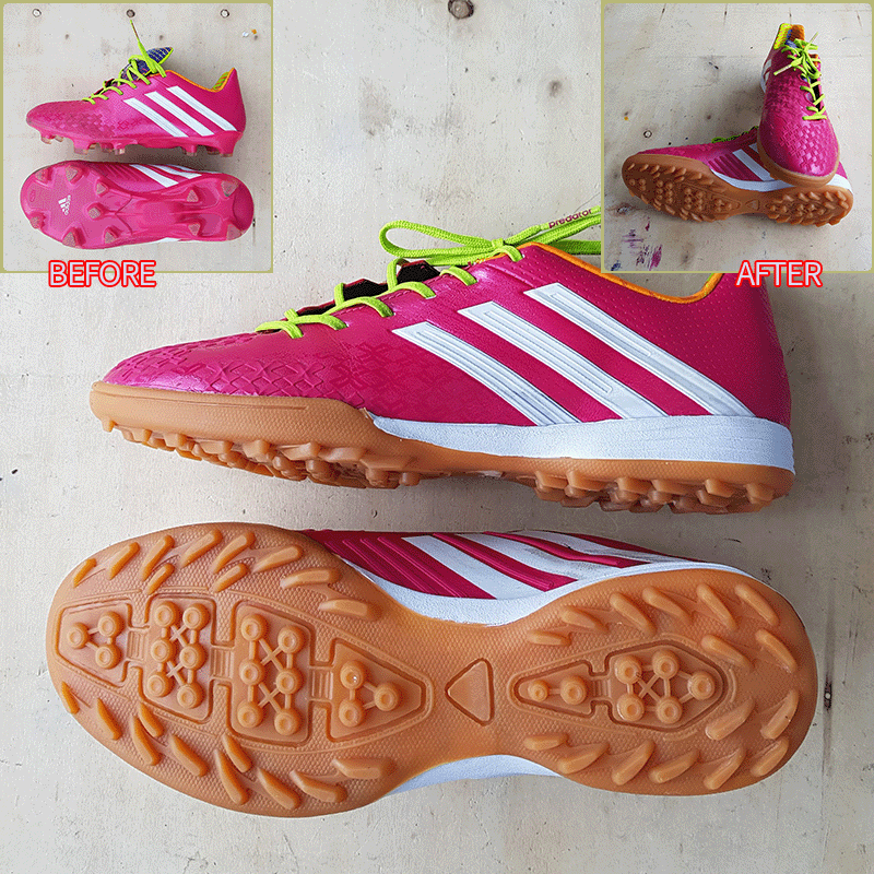 요청하신대로 기장 2~3mm 줄여서 창갈이를 해드렸으니 이젠 즐겁게 축구만 하시면 될것 같습니다.