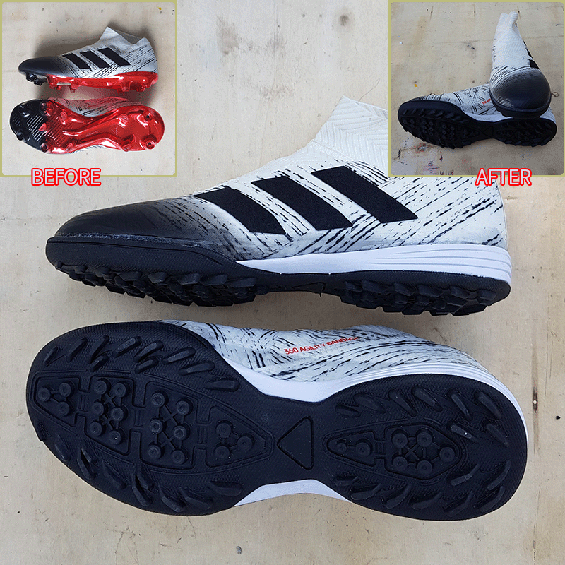 요청하신대로 기장3mm 줄이고 볼 5mm 늘려서 창갈이를 해드렸으니 이젠 즐겁게 축구만 하시면 될것 같습니다.