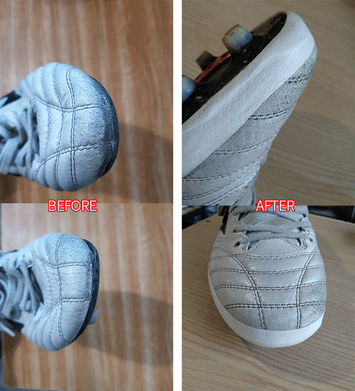 요청하신대로 앞코 덧댐 해드렸으니 이젠 즐겁게 축구만 하시면 될것 같습니다.