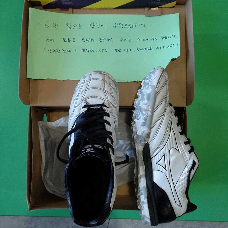 > (발길이 253,발볼 263, 현재 신는 축구화 사이즈 265)