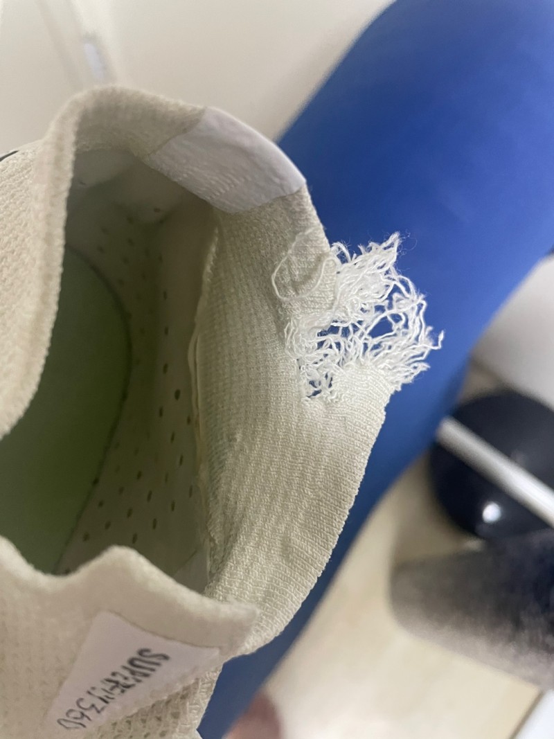 발목 부분이 운동 중에 스터드로 인해 찢어졌습니다...